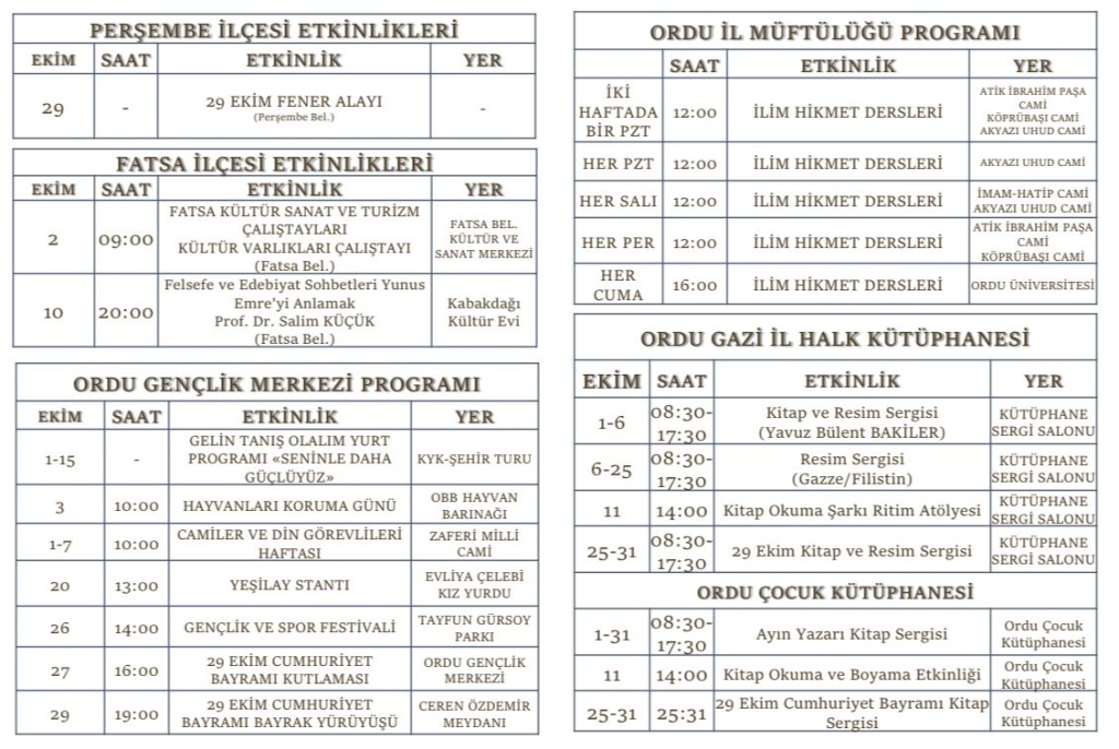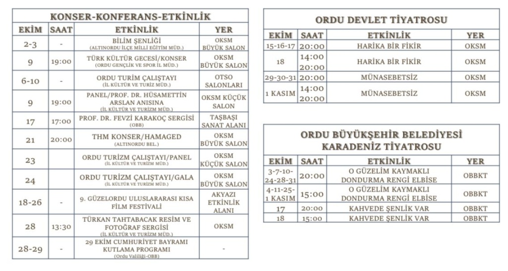 Ordu Kültürel Etkinlik Takvimi - Ekim 2025